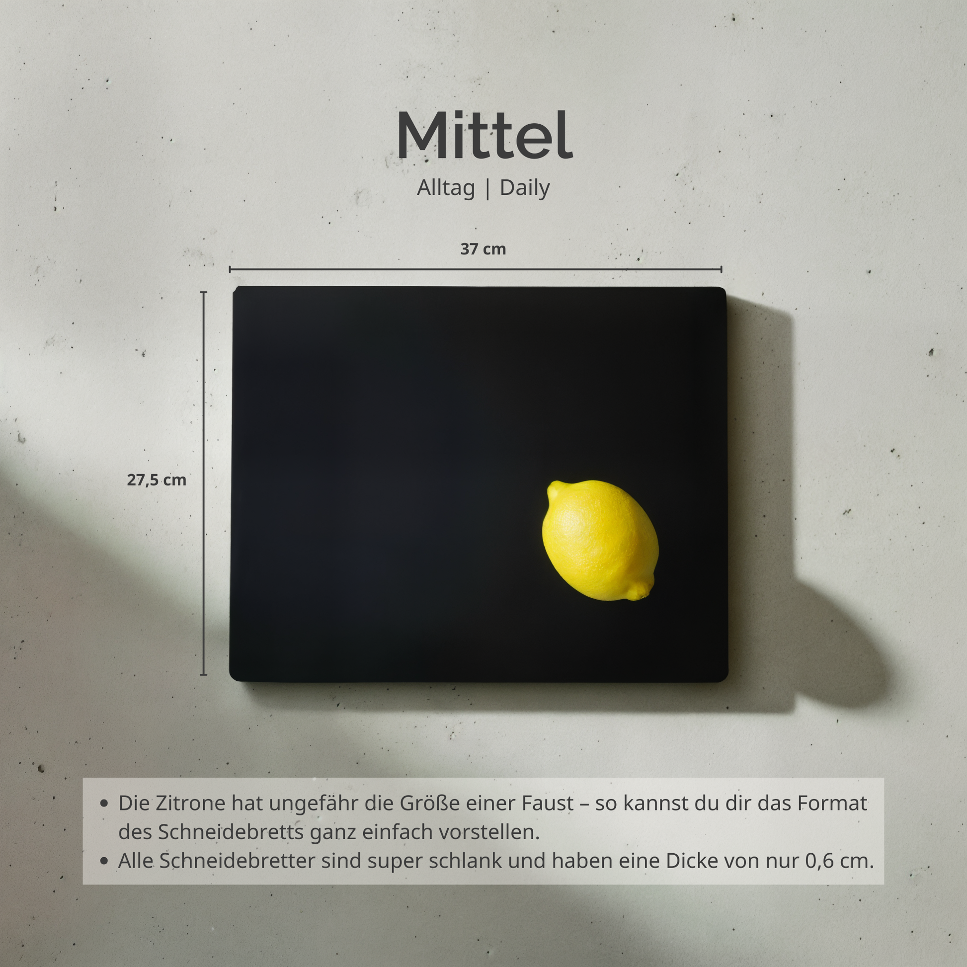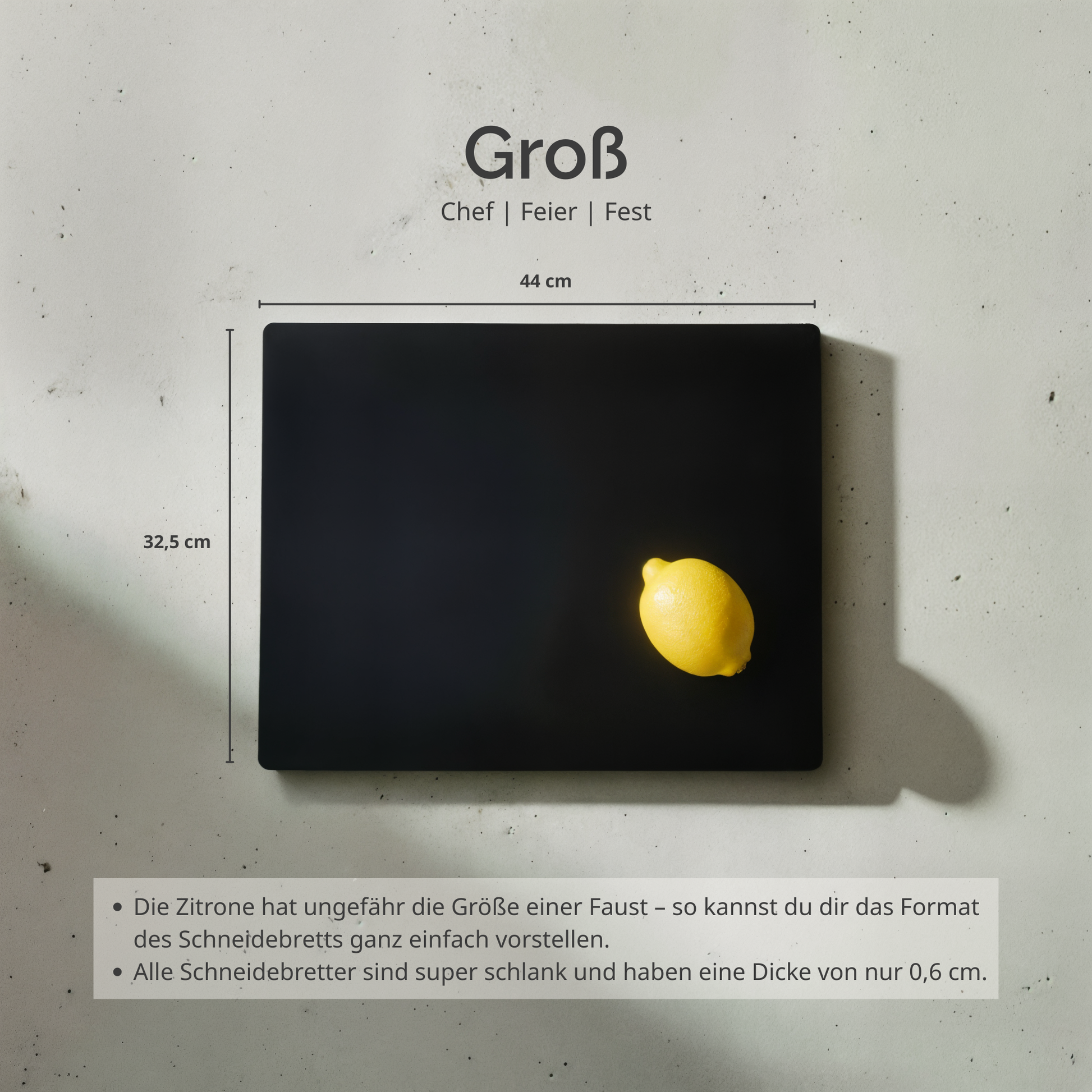 Spülmaschinenfest, messerschonend und langlebig. Die matte schwarze Oberfläche verwandelt jede Arbeitsfläche in ein echtes Statement – ganz ohne Abstriche bei der Funktionalität.